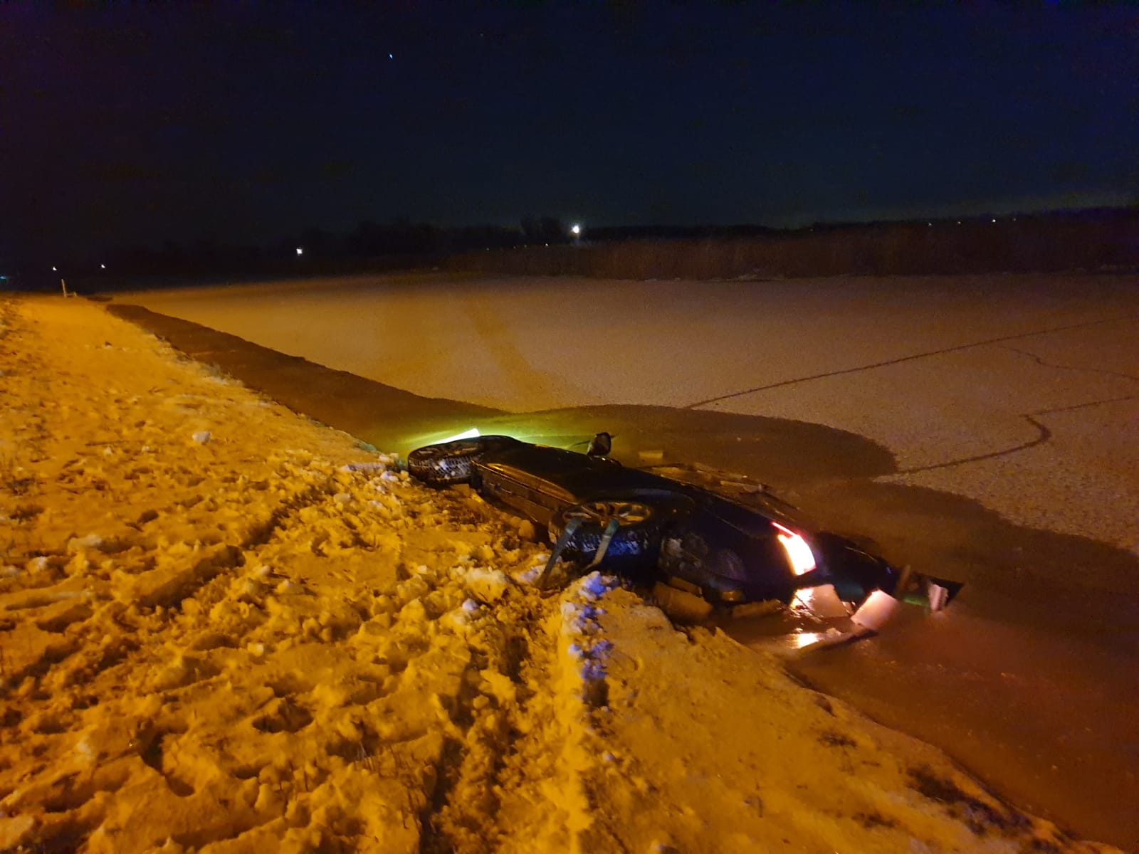 Auto te water op de oostdijk in Heerhugowaard