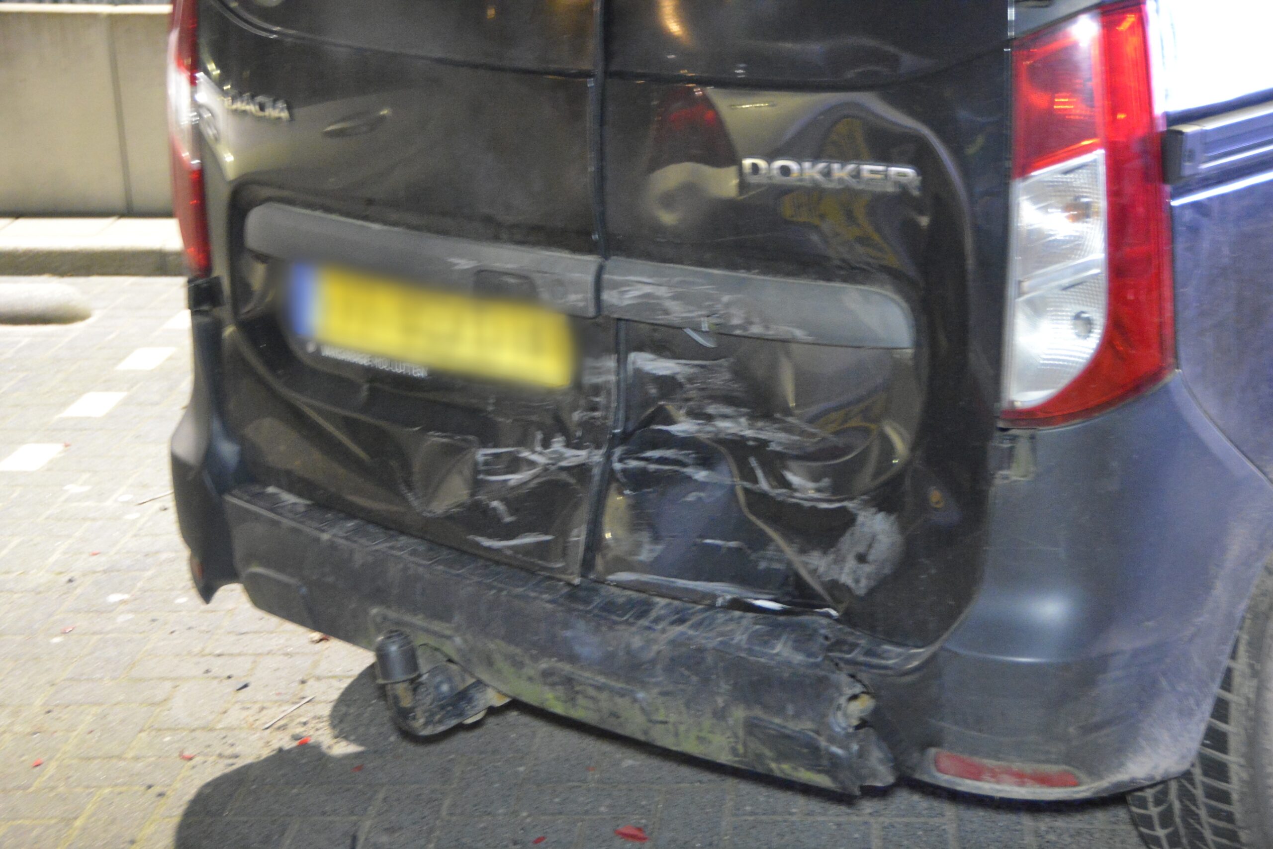 Een bestuurder van een Suzuki reed achteruit op de parkeerplaats. Daarbij ging het mis en knalde de auto tegen een geparkeerd voertuig aan. Door de klap ontstond schade aan beide auto’s.