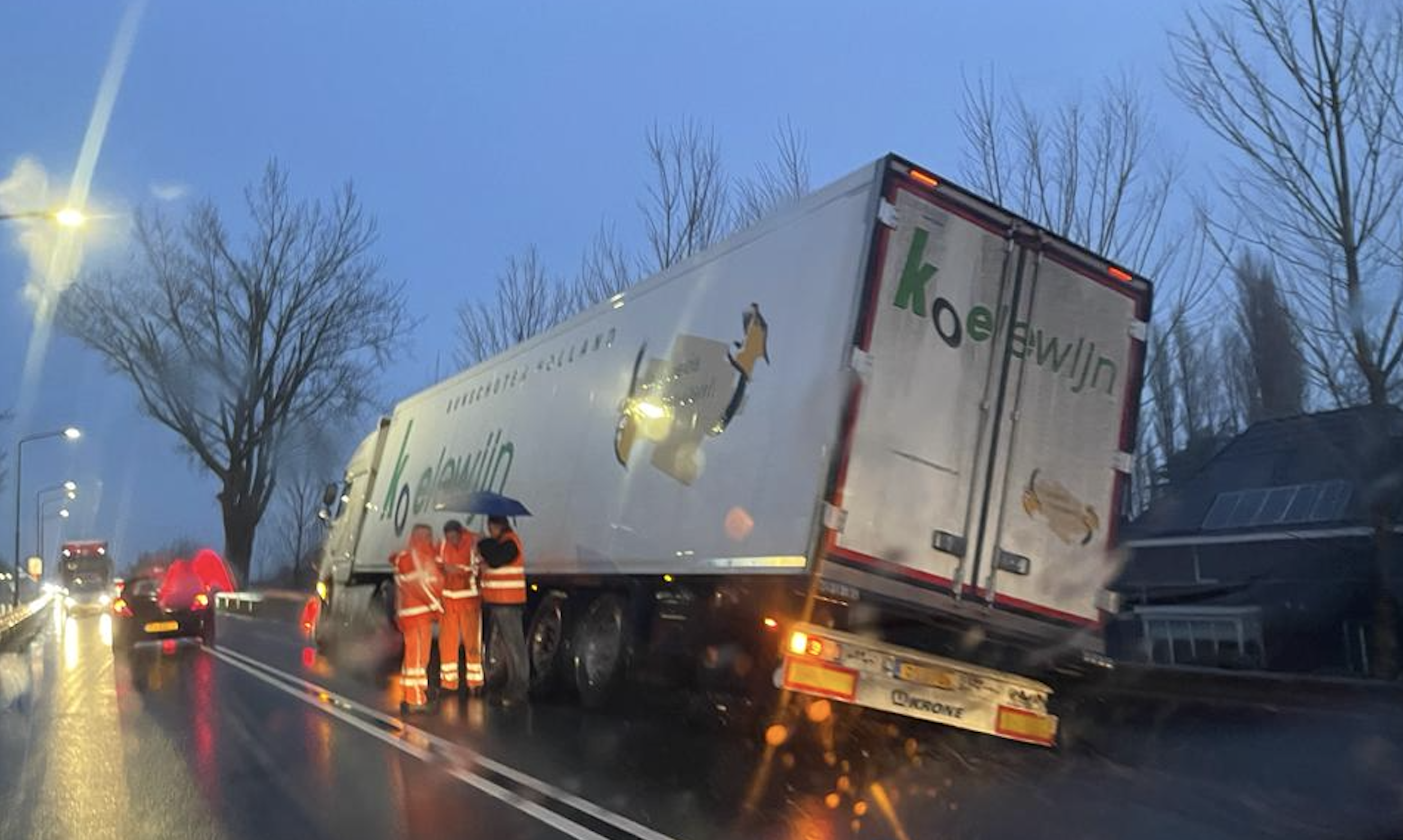 Vrachtwagen knalt tegen Langebalkbrug in Zuid-scharwoude