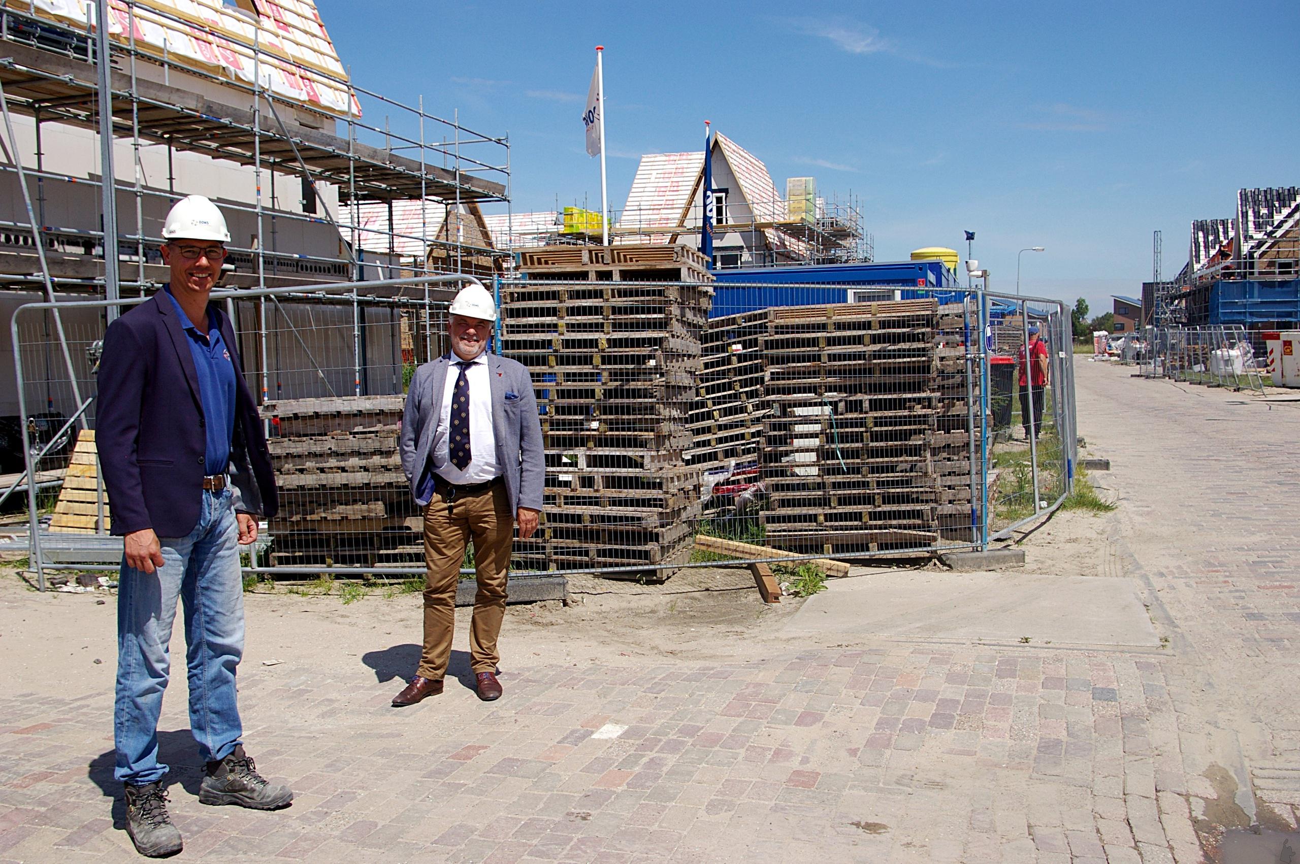 De wethouder sprak op de bouwplaats van het voormalige mavo-veld aan de Dokter Wilminkstraat in Noord-Scharwoude met bedrijfsleider Per Rinkel van Bouwburo Tauber. Hier worden eind 2021 zestien twee-onder-een kap woningen en een appartementengebouw met 28 appartementen opgeleverd. Rinkel heeft meer materiaal ingekocht dan strikt nodig was om voor de zekerheid voor te sorteren op een eventuele tweede golf van besmettingen. Een extra bouwkeet zorgt voor meer spreiding en in deze fase werken niet veel mensen tegelijk op de bouwplaats.