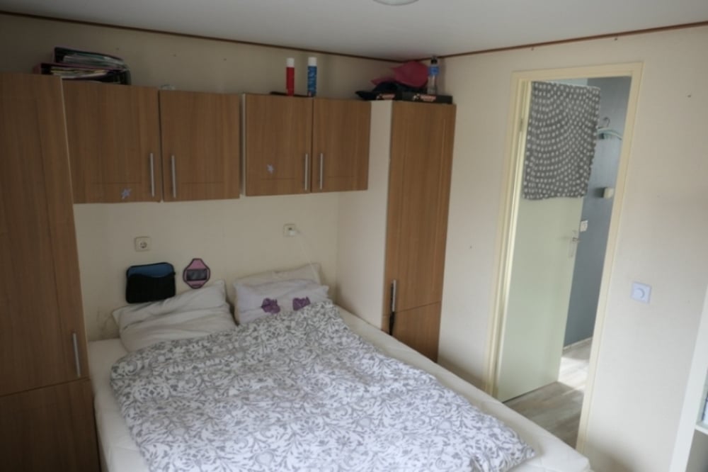 Entree, doorgang naar de lichte woonkamer welke is voorzien van een laminaatvloer en een nette recht opgestelde keuken. De chalet beschikt over 2 prima slaapkamers en een nette badkamer welke is voorzien van een douchecabine, toilet, wastafel en de aansluiting voor de wasmachine.